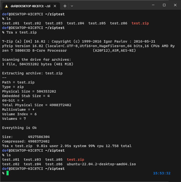 결론부터 말하자면, 리눅스판 7-Zip을 사용하는 게 가장 간편하다.