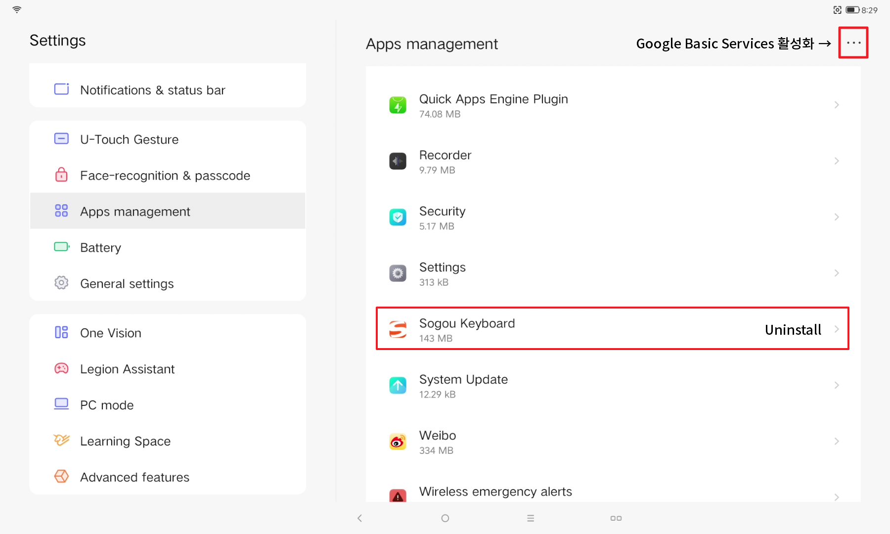 Sogou Keyboard를 Uninstall (중국어 입력모드 들어가져서 해매는 것 방지)