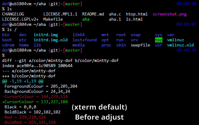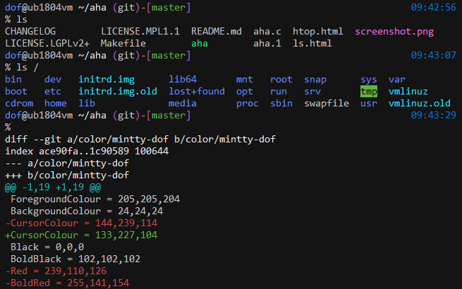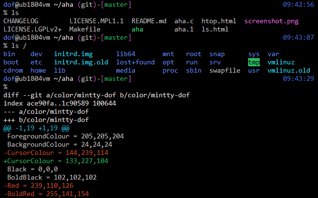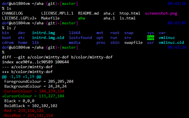PuTTY, Mintty, Windows Terminal 용 배색 설정파일을 아래에서 받을 수 있습니다.