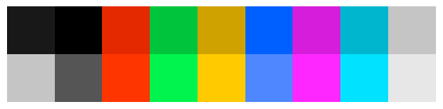 현대의 터미널은 RGB 24-bit 색상도 쓸 수 있지만, 기본적으로는 16색 조합을 많이 사용합니다.