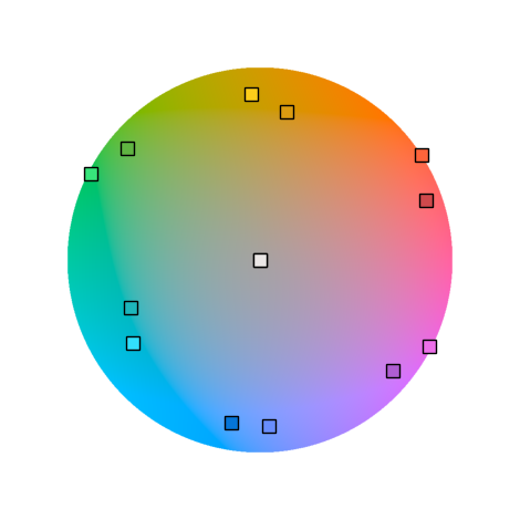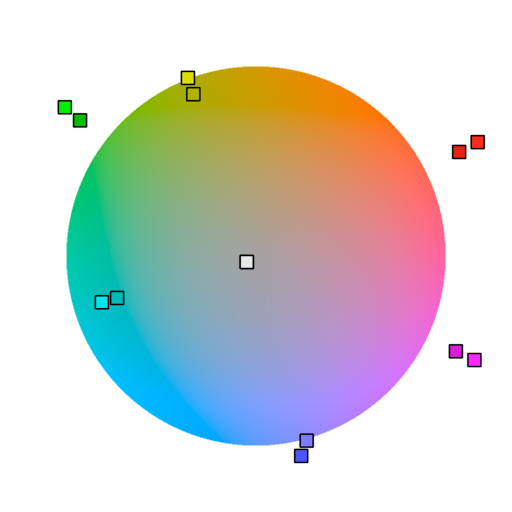 색각 모델을 사용하면 아래처럼 균등한 밝기를 갖는 색상 평면을 구할 수 있습니다.