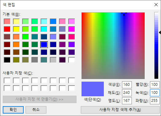 일단 파랑색의 밝기부터 올려보겠습니다.