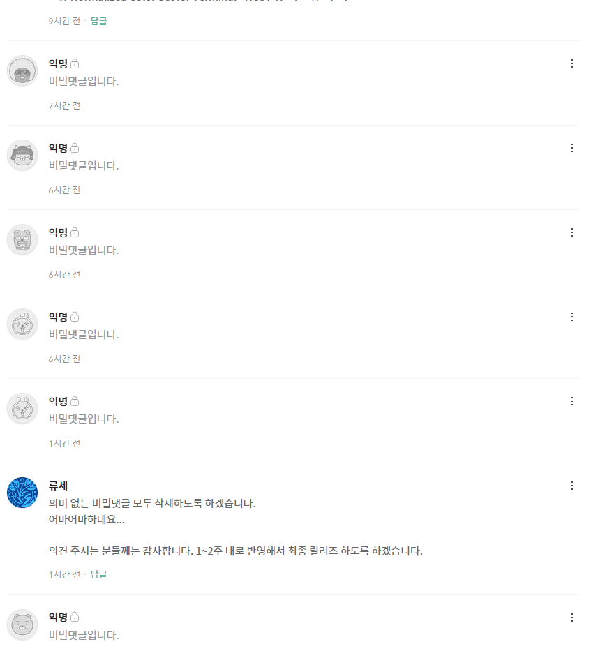 저 비밀댓글들은 모두 스팸성 댓글이다. 그나마 티스토리 스팸필터가 걸러줘서 저만큼 남은 것.