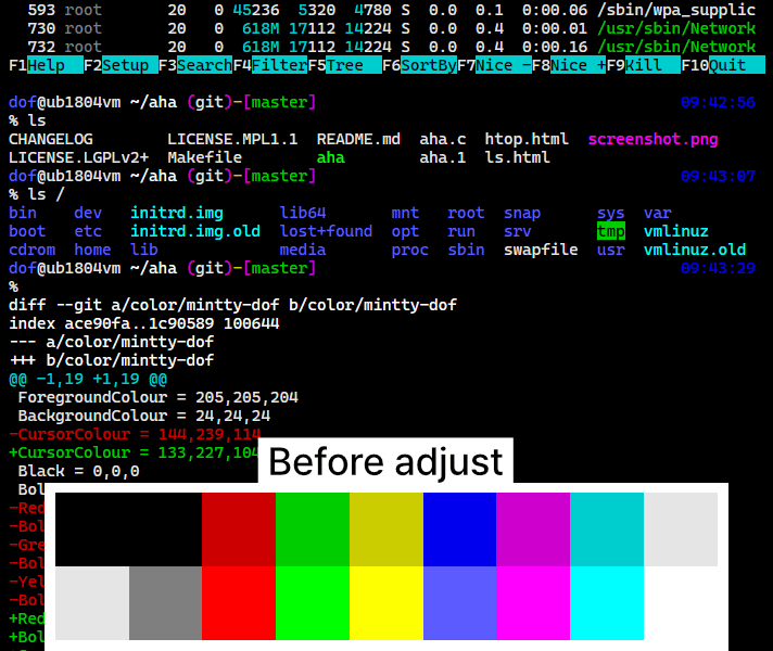 조정하고 한동안 써보고, 조정하고 한동안 써보고... 눈에 만족스러운 색상이 될때까지 실제로 터미널에서 써보면서 다듬었다.