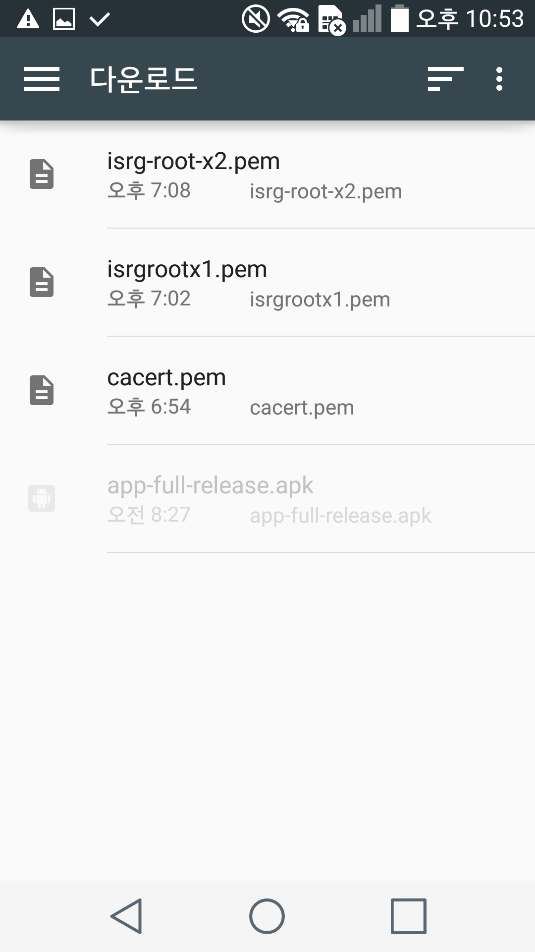 ≡ 메뉴를 눌러 다운로드 받은 인증서(isrgrootx1.pem)를 찾아 선택